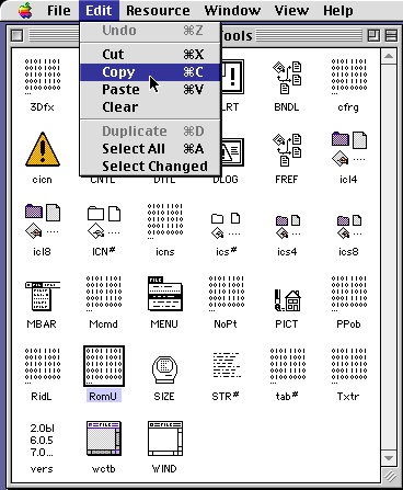 Click on the "RomU" resource to select it and choose "Copy" from the edit menu.