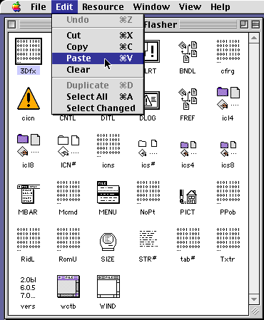 Choose "Paste" from the edit menu to replace the "RomU" resources with the ones you copied from the old version in step 3.