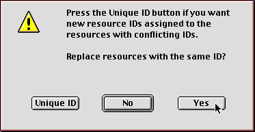 ResEdit will now present a warning alert as follows: